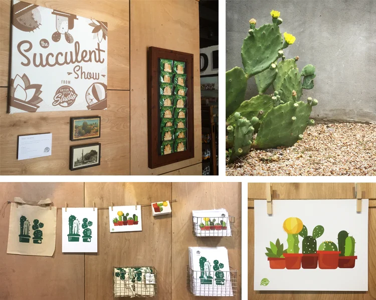 The succulent show has arrived! Parts and Labour on S. Congress here in Austin have given me a 2 month long residency on their art wall. I've spent about 4 months planning, designing, printing, and assembling all sort of succulent themed designs. We've got tote bags, screen prints, digital prints, magnets, notebooks, and stickers. The show runs from May 17 to June 27th. Check it out if you find yourself on S. Congress.